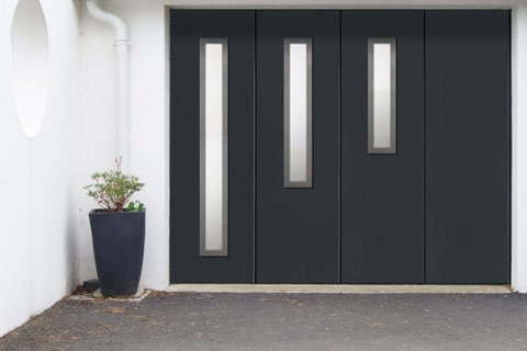 C’est la seule porte de garage qui n’est pas motorisable. Son ouverture se fait strictement de façon manuelle grâce à un rail fixé au sol. La porte de garage a la francaise se compose de 3 ou de 4 panneaux appelés vantaux. Ces panneaux sont reliés ensemble et se replient sur eux-mêmes comme un accordéon.